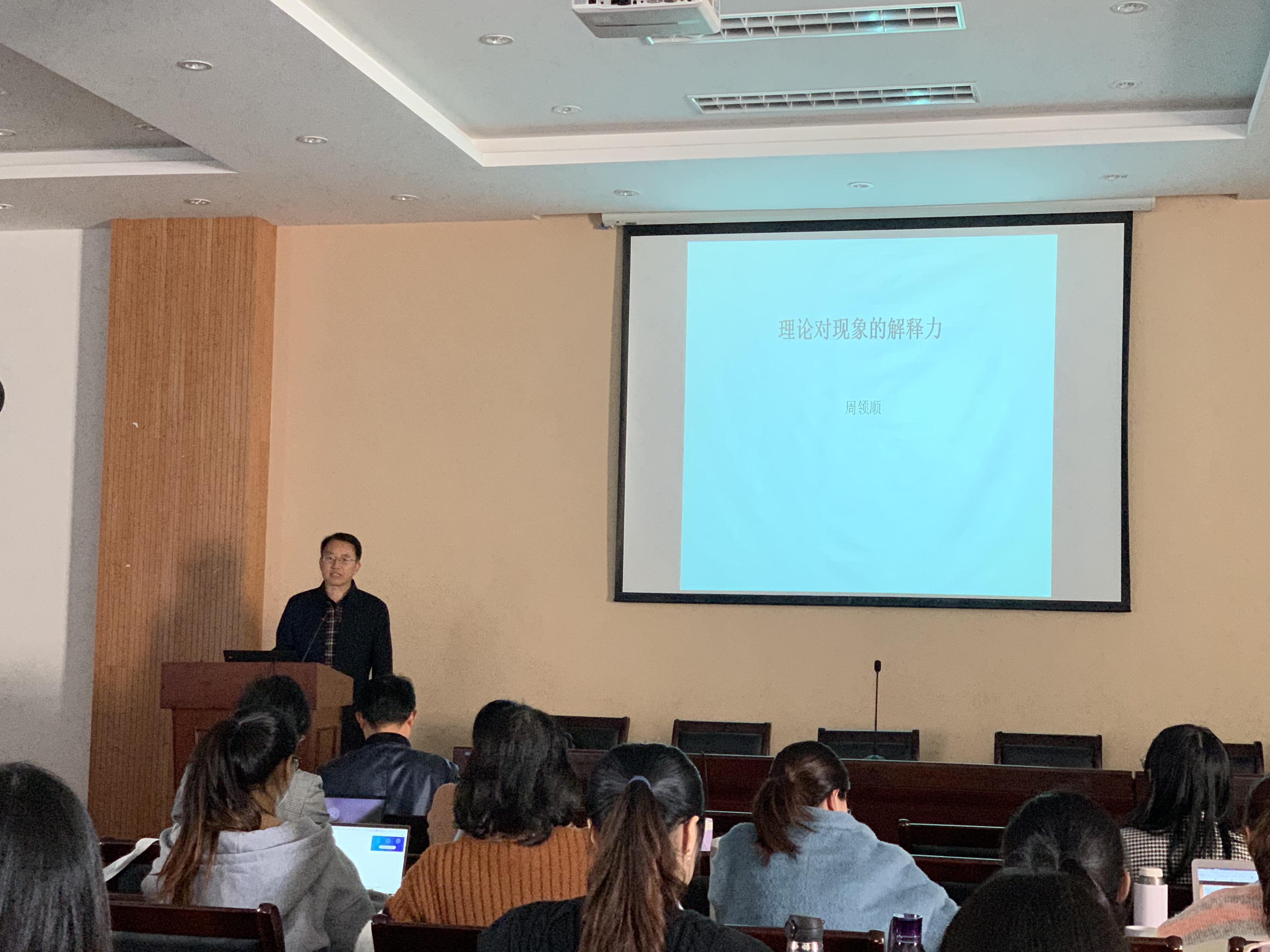 2020年11月9日下午,扬州大学翻译行为研究中心主任、二级教授、博士生导师和博士后合作导师周领顺教授应南京农业大学澳门正规电子游戏平台邀请,于教学楼七楼报告厅为澳门正规官网师生作题为“理论对现象的解释力”的学术讲座。讲座由副院长(主持工作)曹新宇主持,澳门正规官网部分老师和研究生到场聆听。