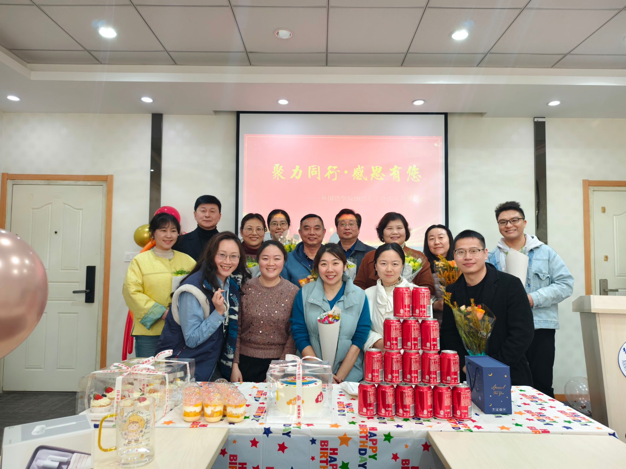 12月3日下午,澳门正规官网在教学楼A310举办“聚力同行,感恩有您”庆生迎新活动,学院班子成员、2025年新入职教师、在职整岁教职工、退休教师代表、工会委员代表等参加了本次活动,活动由学院工会主席桂雨薇主持。