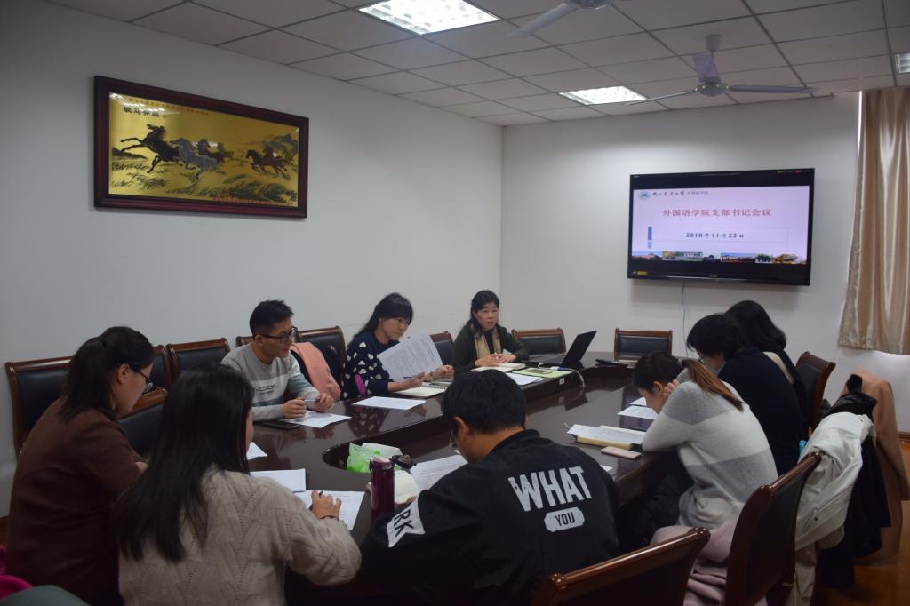 首先,韩纪琴传达了11月13-15日在浙江师范大学召开的“教育部国别与区域研究备案中心第四次交流会暨非洲中心建设专题研讨会议”精神,具体分享了浙江师范大学非洲研究中心、北京语言大学、北京外国语大学、中国农业大学等高校的国别研究实例。韩纪琴指出,国别与区域研究作为外国语言文学学科发展的一个新领域,越来越受到教育部及相关高校的重视。澳门正规官网也非常重视国别与区域研究,希望深层次思考与学科结合的问题,做好顶层设计,将其作为学科取得突破的契机。同时,韩纪琴通过介绍北语“法语国家与地区研究”课程方案,分享了自己对农业走出去视角下的复合型人才培养的思考,鼓励支部书记们做好师生党员的组织者和带头人,更多地考虑工作与学习如何服务于国家需求和学校的发展战略。