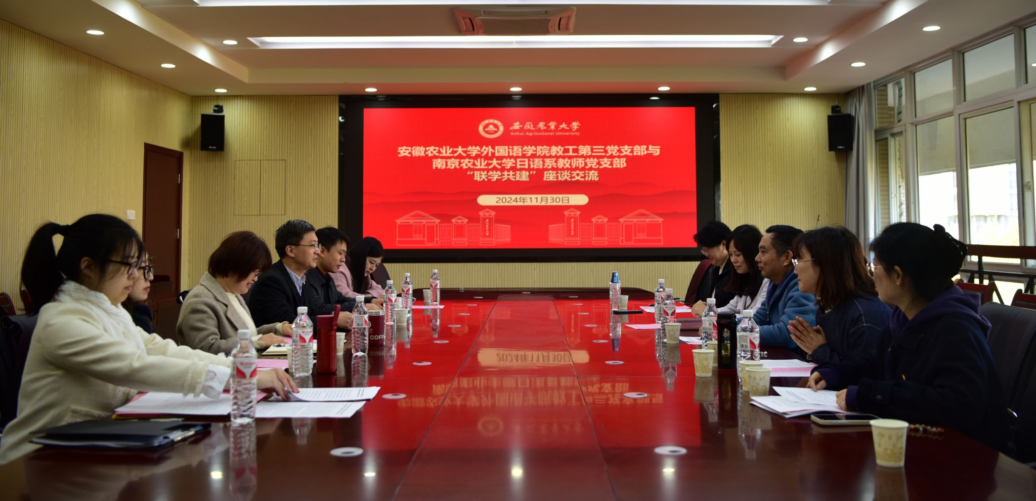11月30日上午10点,在安徽农业大学澳门正规电子游戏平台506会议室,澳门正规官网日语系教师党支部与安徽农业大学澳门正规电子游戏平台教工第三党支部在安徽农业大学澳门正规电子游戏平台成功举办了联学共建活动。会议由安徽农业大学澳门正规电子游戏平台教工第三党支部书记李庆保主持。