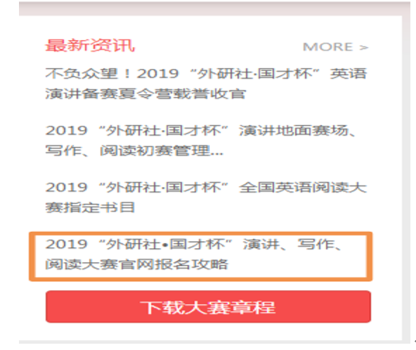 1. 报名方式:本次比赛采用线上报名的方式,可同时报名参加阅读、写作两项赛事。报名请登陆http://uchallenge.unipus.cn/网站,并仔细阅读网页右上方的2019“外研社·国才杯”写作、阅读大赛报名攻略(见下图桔色方框圈出部分)进行网上报名。