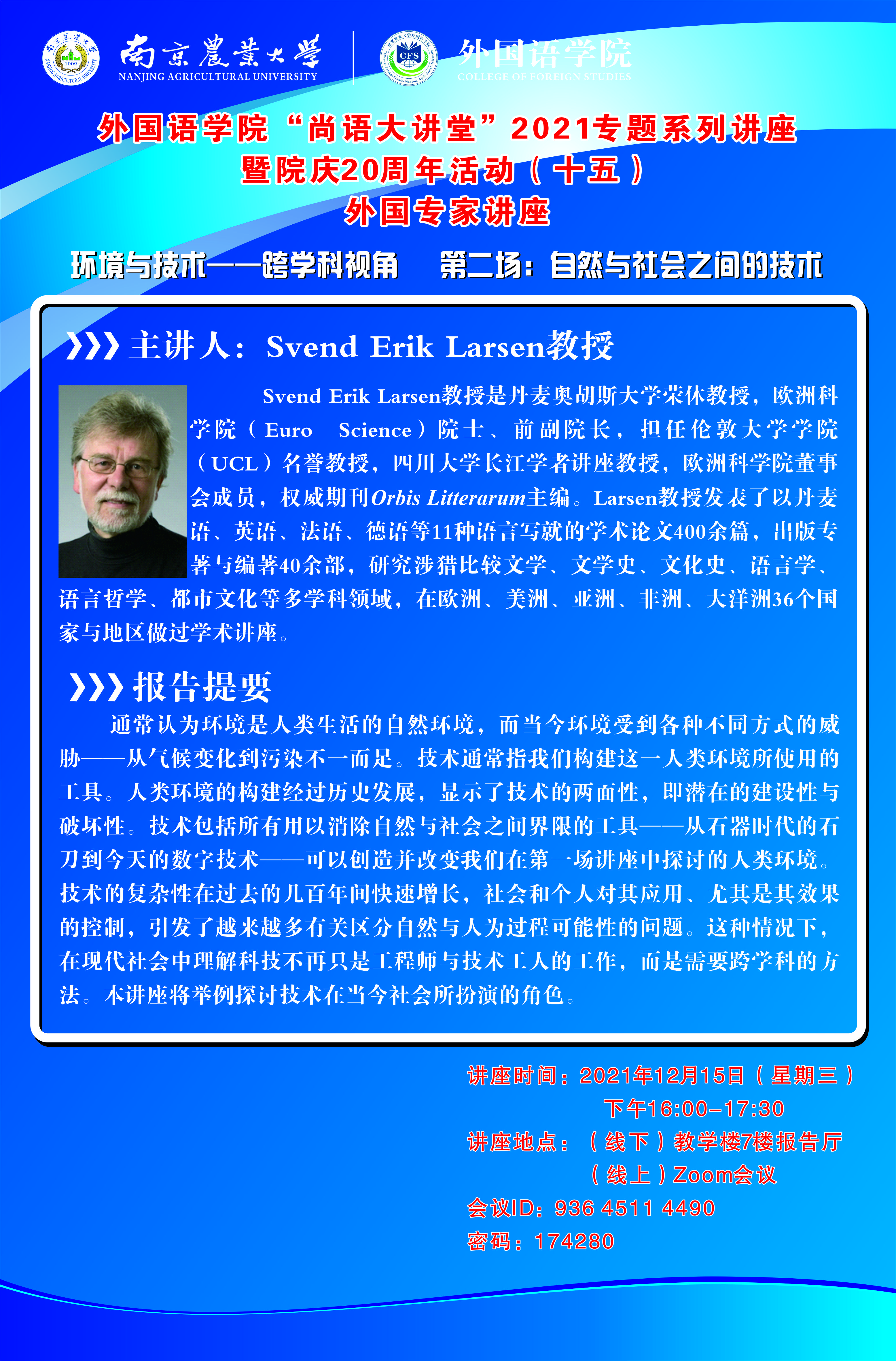 讲座时间:2021年12月15日(星期三)下午16:00~17:30