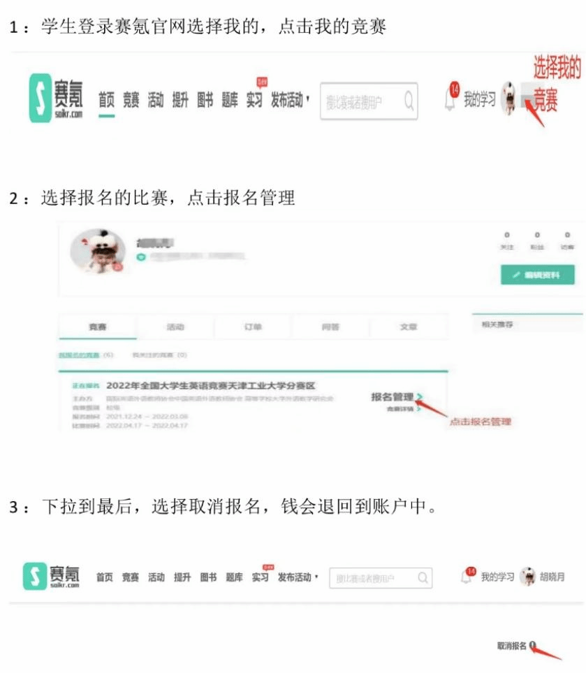 申请退赛退款步骤: