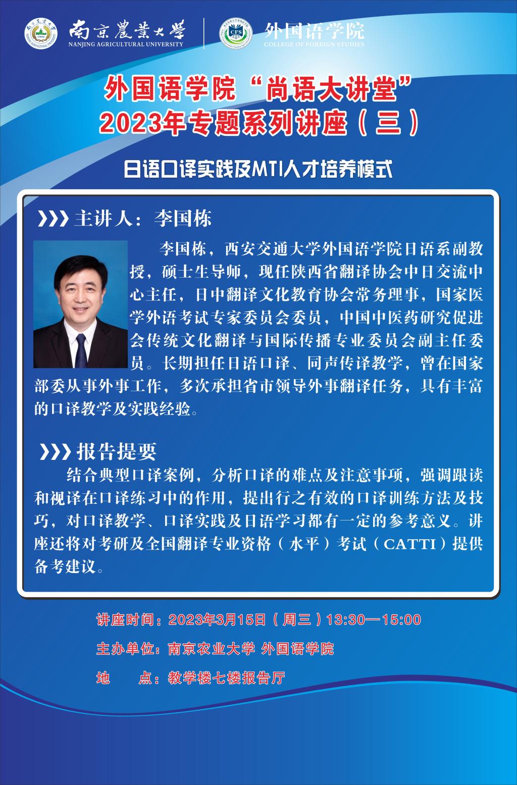 报告题目:日语口译实践及MTI人才培养模式