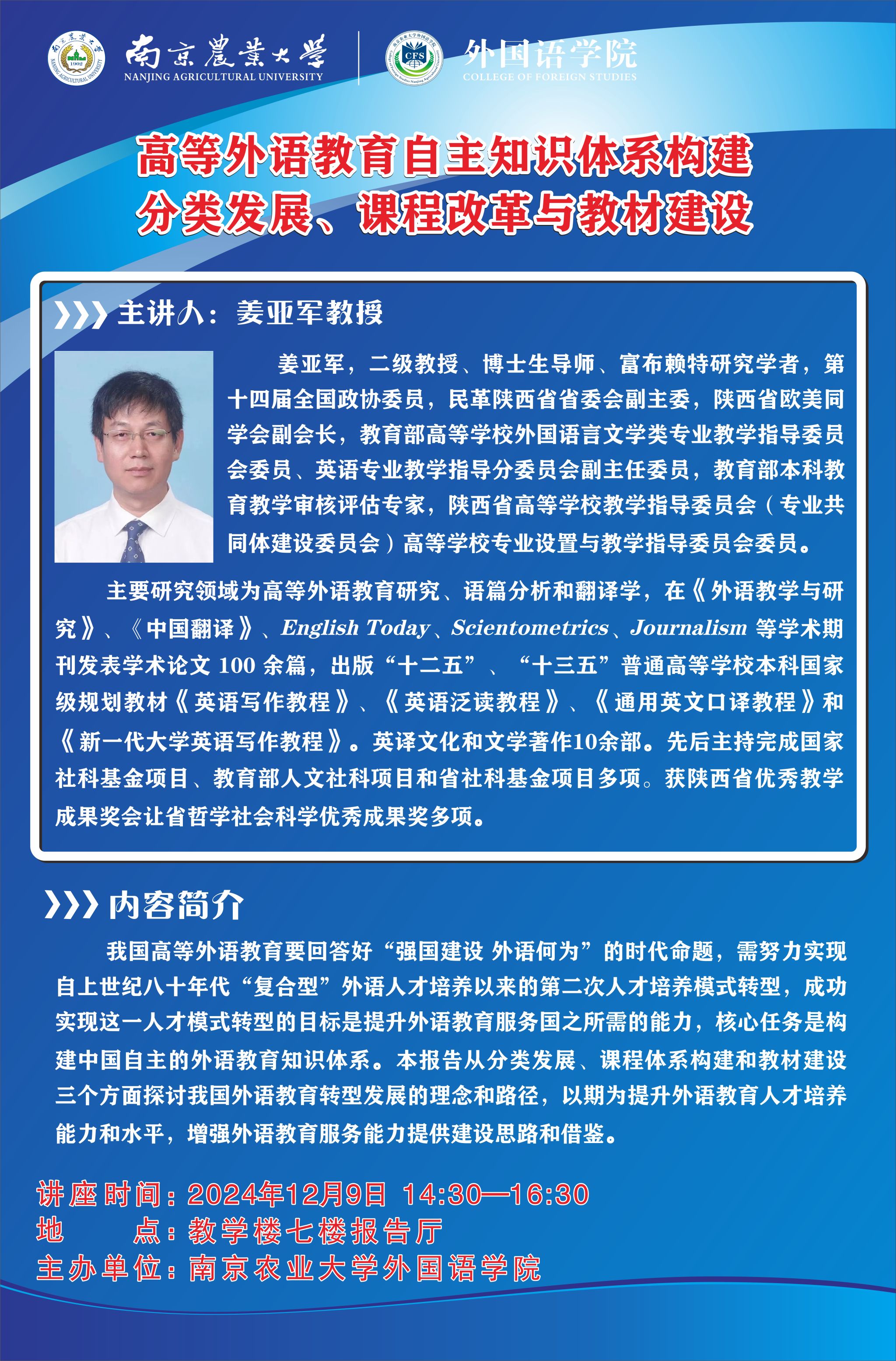综合楼三楼 025-84395755(院办) 025-84396722(学生办) 邮编:210095 地址:南京卫岗1号