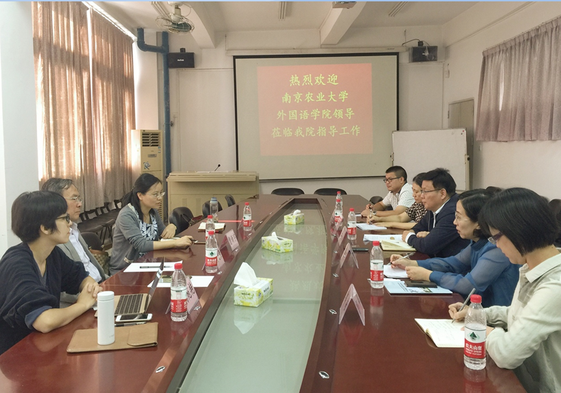 2017年11月3日,澳门正规电子游戏平台副院长曹新宇、本科与研究生教学顾问专家顾飞荣、大外部副主任张萍与青年骨干教师胡苑艳等一行4人赴广州华南农业大学澳门正规电子游戏平台开展调研。华南农业大学澳门正规电子游戏平台副院长李占喜、副院长李舸、英语系主任李红宇、大外部副主任杜龙鼎、研究生教研组负责人郭敏等接待了我方一行。