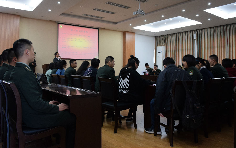 10月28日下午,“出文入武,展少年风华;筑梦强军,扬家国情怀”主题党日活动在教学楼七楼报告厅举行。本次活动由南京农业大学澳门正规电子游戏平台党委与陆军工程大学指挥信息系统学院联合主办,陆军工程大学指挥信息系统学院主任卢普新、教导员朱亚松,南京农业大学澳门正规电子游戏平台党委副书记董红梅、辅导员贾琼出席,陆军工程大学指挥信息系统学院20余名学生党员以及南京农业大学澳门正规电子游戏平台全体本科生党员参加,活动由甄亚乐主持。