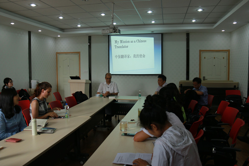 韩裴先生在讲座中通过渐进引入方式,向我们展示了他对中国文化的热爱和对翻译事业的执着,他详细介绍了他迄今为止完成的多部中国文化典籍作品的保加利亚文翻译的心路历程,包括对翻译技巧的运用、译者和源语文本作者之间如何建立关系、翻译过程中如何通过咨询专家和查阅文献资料来解决难点,他还向我们介绍了他对莫言作品翻译的困难及其与传统文化典籍作品的翻译之间进行的异同比较。尤为值得一提的是,他对中国文化典籍作品的选择独具匠心,而且他的作品在保加利亚创下了中国文化典籍译介的多个第一,他是多部中国文化典籍作品直接从中文翻译为保加利亚文的第一人,其中就包括他最钟爱的《红楼梦》,他甚至戏称自己有浓郁的“宝玉情结”,充分展示了他作为一位翻译家的情怀和追求。