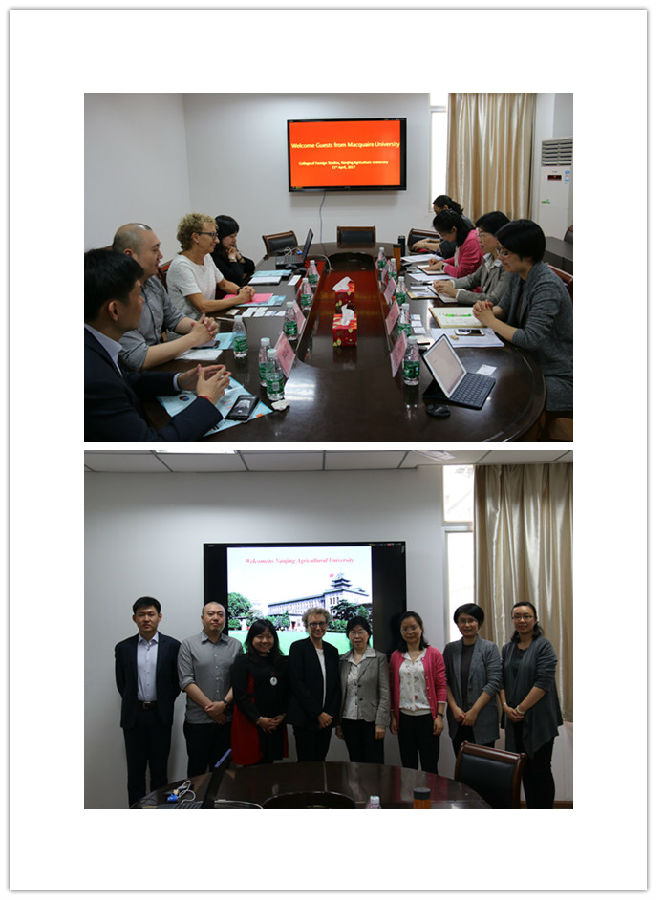 4月21日下午,澳大利亚麦考瑞大学人文科学学院副院长Lynda Yates教授、麦考瑞大学中国区高级经理柳茵茵来澳门正规官网商谈学生联合培养等事宜。院党委书记韩纪琴、副院长曹新宇、英语系徐黎老师等在教学楼E302接待了Lynda Yates一行。澳门正规官网国际处副处长魏薇专程来参加交流。