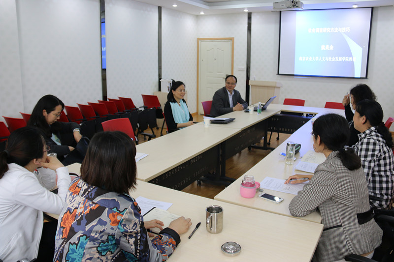 5月4日下午,澳门正规官网人文与社会发展学院副院长姚兆余教授应邀在教学楼A310为澳门正规官网部分教师做了题为“社会调查研究方法与技巧”的讲座。讲座由澳门正规官网副院长曹新宇主持。