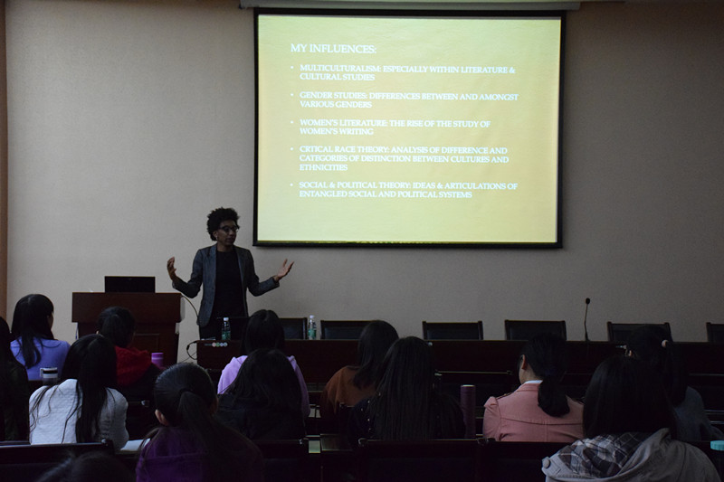 15号下午Salt博士做了题为“Frederick Douglass, Marie Vieux Chauvet and the Re-making of American Literature”(弗莱德里克·道格拉斯,玛丽·维科斯·肖威,以及美国文学的重构)的讲座。她以两位族裔作家为例,分析了在美国文学的建构中个体声音、形象、个体体验的塑造、记录、与书写的重要性。Salt博士介绍了自己求学的1980年代,美国大学文学课程中异军突起的族裔文学、性别研究、文化研究、女性文学、社会政治理论等诸多新理论视角,以及对形成自己的研究方向的重要影响。讲座结尾处,Salt博士援引Edwidge Danticat的文本,鼓励每位学子勇于发出自己的声音,书写自己的生命体验,以汇入人类总体文本的洪流。