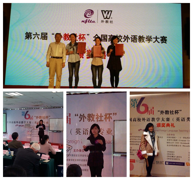 第六届“外教社杯”全国高校外语教学大赛全国总决赛于2015年11月29日至12月1日在上海外国语大学举行。澳门正规官网张菁秋老师以江苏赛区第一的成绩进入全国总决赛。来自全国29个省区的65名选手同场竞技。比赛除笔试、授课外,还要进行10分钟的即兴说课比赛。这一环节是对各位选手的语言功底、教学理论、教学能力、心理素质等方面的"残酷"考验,而选手们富有逻辑性、可操作性的教学方案,既有理论支撑的高度,又关注了具体教学的细节,展现了本次大赛的高水平。经过三天的激烈角逐,最后张菁秋老师以总分第四的成绩获商务英语专业组一等奖。这也是澳门正规官网教师在外语教学比赛中取得的最好成绩。