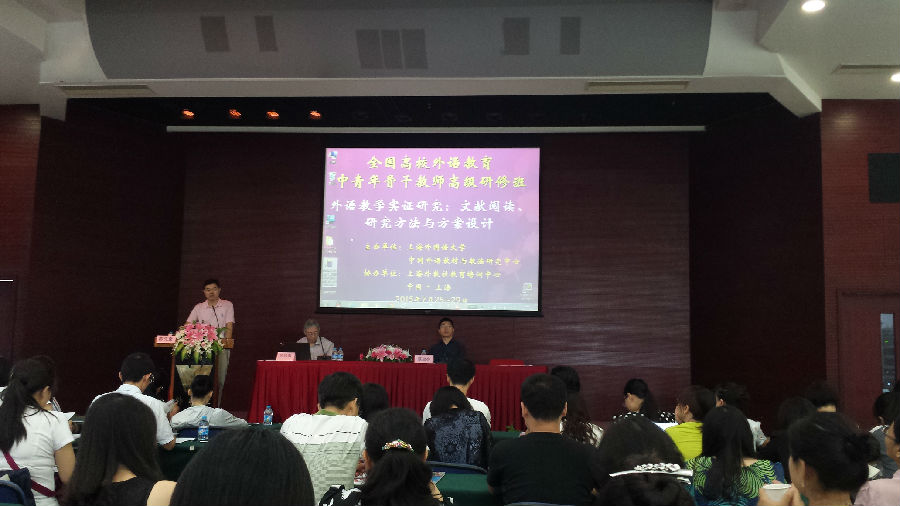 由上海外国语大学中国外语教材与教法研究中心主办的“2015年暑期(7~8月)全国高校外语教育中青年骨干教师高级研修班”在上海外国语大学举办,澳门正规官网田学军、徐黎两位老师应邀参加了此次研修。