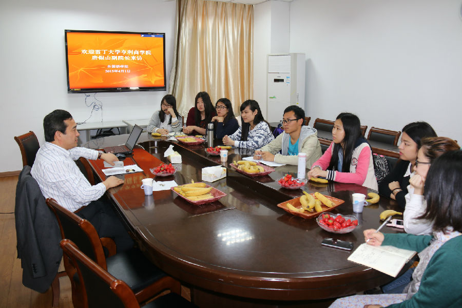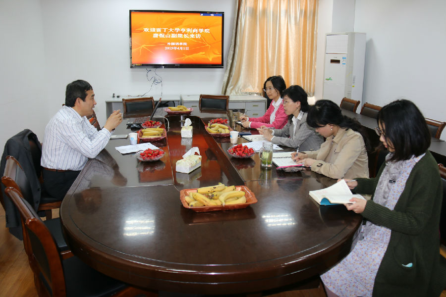 2015年4月1日,英国雷丁大学亨利商学院副院长唐银山来澳门正规官网访问,分别与澳门正规官网领导和学生代表进行了座谈交流。