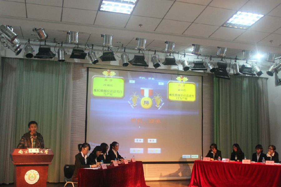 2014年11月26日晚19:00,南京农业大学新生杯辩论赛决赛在教四楼报告厅隆重举行。比赛双方为正方外语院和反方金融院,双方围绕“现代婚姻应不应该讲究门当户对”这一辩题展开辩论。