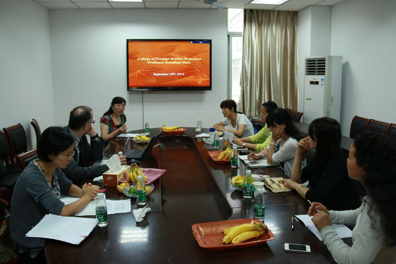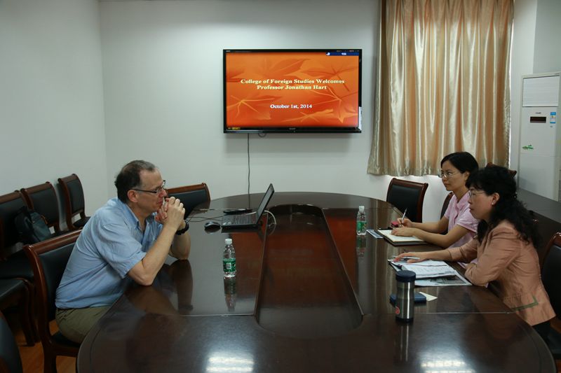 10月1日上午,澳门正规电子游戏平台书记韩纪琴、副院长曹新宇和Hart教授就国际刊物论文发表以及国际交流与合作等事宜进行了交流。Hart教授就自己的切身经历,对年轻学者在国际刊物上发表论文提出了自己的见解和建议;Hart教授介绍了自己在剑桥、哈佛、普林斯顿、阿尔伯塔、多伦多等多所大学的工作和访问经历,表示愿意为澳门正规电子游戏平台在科研项目和学生培养等方面的国际合作牵线搭桥。