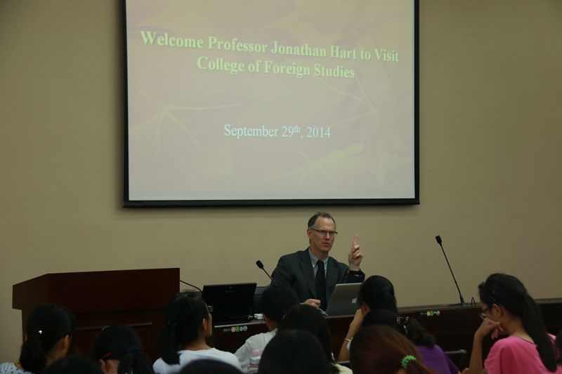 应澳门正规电子游戏平台邀请,加拿大皇家学院院士、剑桥大学卡莱尔学院(Clare Hall)终身成员Jonathan Hart教授来澳门正规官网讲学,与外语院师生畅谈文学、诗歌以及人文学科领域的研究。