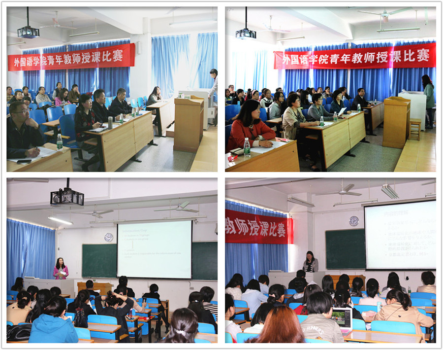 2014年4月23日下午,澳门正规电子游戏平台举行了全院青年教师授课竞赛,22名35岁及以下从事英语专业、日语专业和大学公共英语教学的教师参加了比赛。比赛采取说课10分钟的形式进行,分为日语和英语两组进行,参赛人分别从教学目的、预期效果、教学步骤、教学内容、课堂活动设计等方面展开阐述,并就课程的安排和考核等进行了说明我分析。各位老师充分准备,精心设计,授课内容理解和陈述到位,教学重点难点突出,内容丰富多彩,教学活动设计合理,表现出了各自深厚的语言功底和精湛的课堂艺术,展现了各自不同的教学风采。