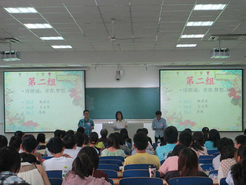 比赛共分为三组进行。首先,第一组选手以一首朗诵诗《相信未来》点燃了现场气氛,比赛正式开始。选手们各展所长,分别从不同角度为观众剖析了青春与梦想。有的选手富有责任感,把家庭、集体及社会责任与青春的梦想紧密结合,提醒我们时刻谨记自己的责任;有的心系国家政治,希望用自己的努力,为祖国的长治久安与世界的和平发展贡献一份力量;有的细察生活的点滴,为我们讲述自己独一无二的梦想。第二组选手也未让观众失望。他们激情洋溢、慷慨陈词的风采展现了“恰同学少年”的风华正茂,“实干托起中国梦”更是新一代青年勤劳务实的宣言。少年强则国强,从他们身上可以预见中国将会有着充满活力与希望的未来。第三组选手由于年级较高,表现得更加成熟稳重。他们追求简单有价值的梦想,浅谈从稚嫩到成熟的成长历程,并且能够勇于创新,在形式上灵活多样,给人耳目一新之感。