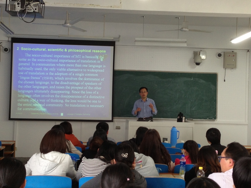 2013年4月13日上午9点至下午4点,南京大学澳门正规电子游戏平台柯平教授应邀来澳门正规官网讲学,为MTI笔译一年级、二年级全体同学以及部分老师作了一场题为《翻译与计算机技术》的专题讲座。