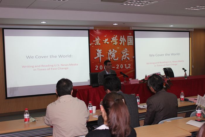 该场报告,紧接解放军国际关系学院端木一万的论参考消息新闻翻译问题的学术报告。两报告均涉西方新闻领域,视角一中一洋,学术互补,为广大师生在院庆日奉上了风味别样、余味无穷的精神大餐。