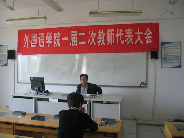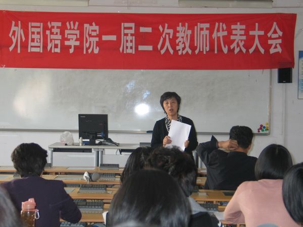 4月27日下午,外语学院在教学楼A406召开澳门正规电子游戏平台一届二次教师大会,主要审议澳门正规电子游戏平台“十二五”发展规划。大会由学院党委书记景桂英主持,院长秦礼君作了主题报告。会中教师代会分组对学院“十二五”发展规划进行了讨论。最后,教师代表原则上通过学院的“十二五”发展规划。