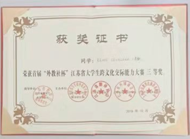 经过激烈的角逐,澳门正规官网学生获得佳绩。其中,外语学院汤璟瑶获得本科组三等奖,动医学院李默获得留学生组三等奖、经管院王禹钦获得小语种组三等奖。