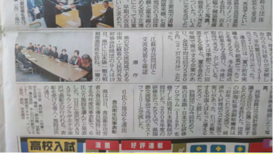日本石川县《北国新闻》就江苏省大学教师团和省对外人民友好协会访问团访问一事进行报道