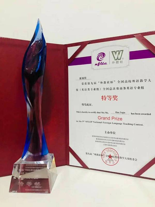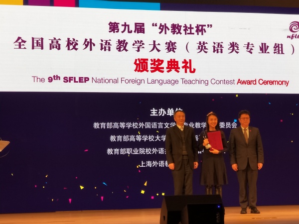 12月2日,由教育部高等学校外国语言文学类专业教学指导委员会、教育部高等学校大学外语教学指导委员会、教育部职业院校外语类专业教学指导委员会和上海外语教育出版社举办的第九届“外教社杯”全国高校外语教学大赛全国总决赛在上海外国语大学落幕。经过三天全国决赛、总决赛的激烈角逐,澳门正规官网霍雨佳老师获得商务英语专业组特等奖(第1名)。这也是澳门正规官网选手首次在这一大赛中获特等奖。