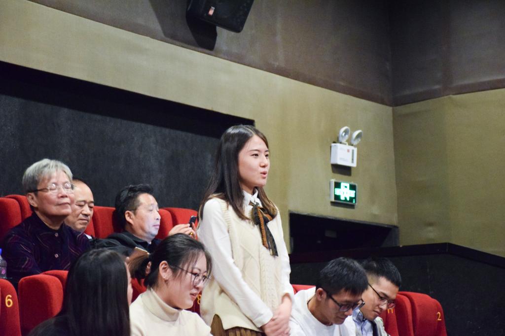 合唱结束后,师生党员纷纷发表观影感受。亲身经历影片中故事的退休党员邓昭春对影片中庆祝我国第一颗原子弹爆炸等场景产生共鸣,她表示对每一份平凡工作的背后都承载着神圣的使命。副院长游衣明早已热泪盈眶,他分享了年轻时代亲身经历女排夺冠的激动,他对新中国成立七十年默默付出千千万万的人民群众表达了感激之情。学生党员贾琼和孙越分别就自己印象深刻的片段分享了自己的感受。