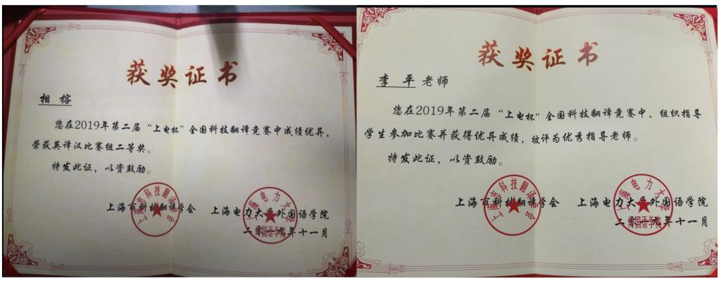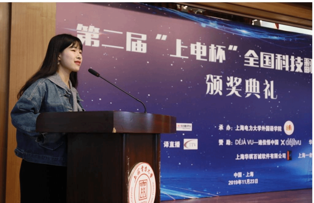 近期,由上海市科技翻译协会主办,上海电力大学澳门正规电子游戏平台承办,试译宝、译直播协办的第二届“上电杯”全国科技翻译竞赛落幕,澳门正规官网英语系本科三年级学生相榕获得英译汉组二等奖,MTI研究生周游获得三等奖。11月23日,相榕同学应邀出席了在上海电力大学举行的颁奖典礼。