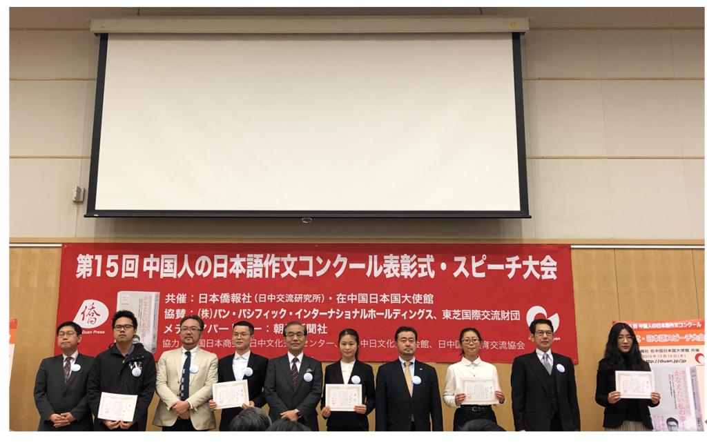 12月12日,第15届中国人日语作文大赛颁奖仪式在日本驻华大使馆隆重举行,澳门正规官网获奖师生代表应邀出席。