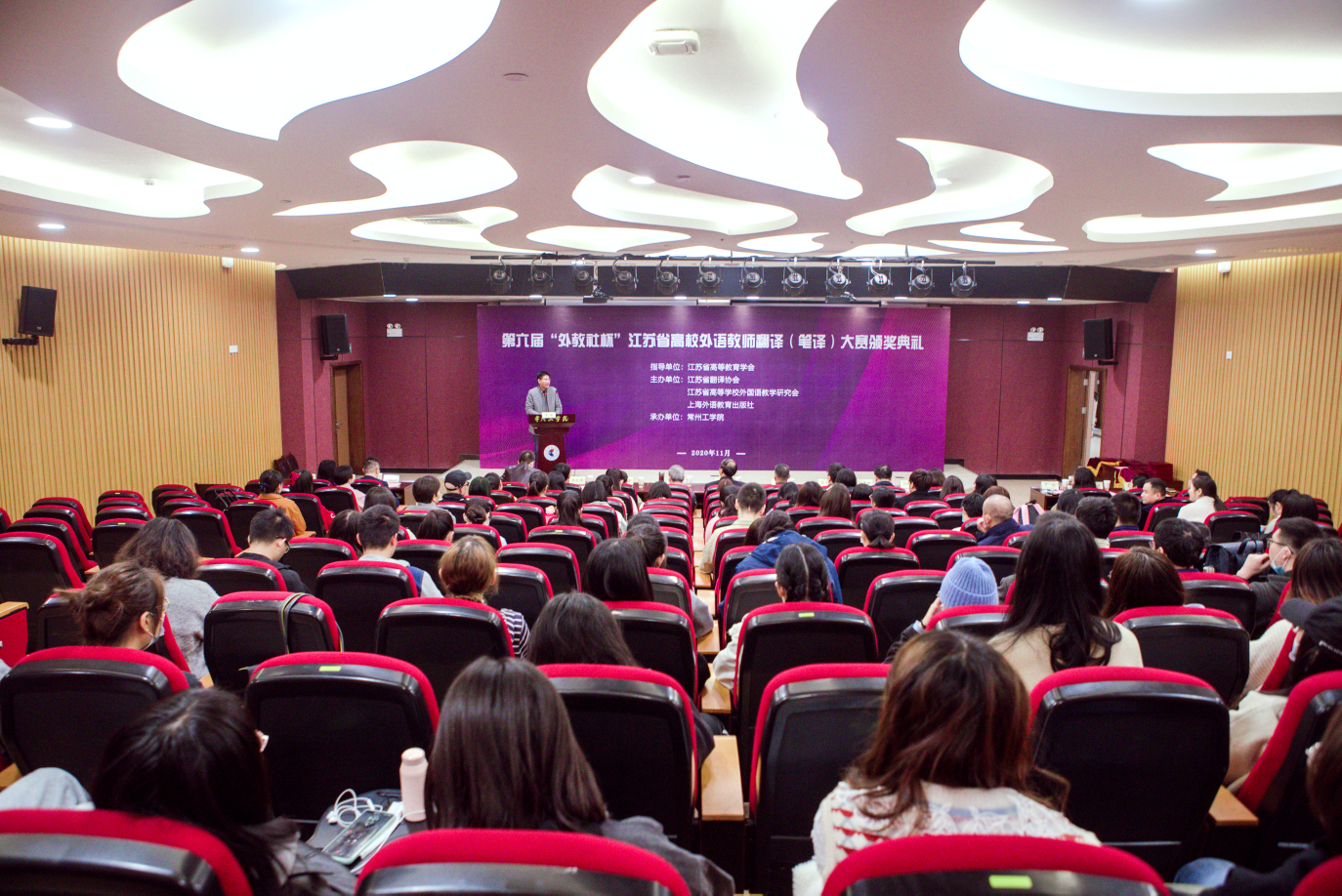 11月20日-21日, 第六届“外教社杯”江苏省高校外语教师翻译(笔译)大赛暨颁奖典礼在常州工学院辽河路校区成功举行。本次大赛由江苏省高等教育学会指导,江苏省翻译协会、江苏省高等学校外国语教学研究会以及上海外语教育出版社共同主办,常州工学院澳门正规电子游戏平台承办。