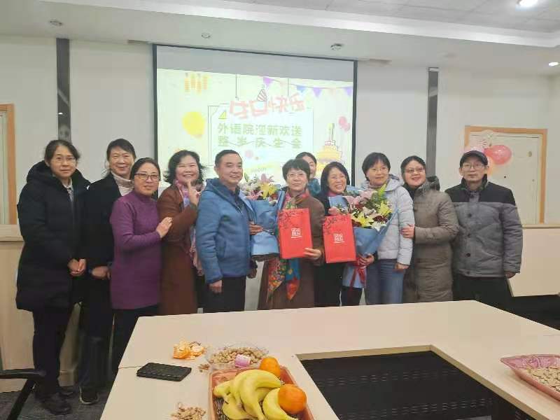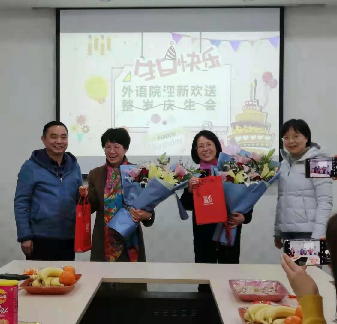 12月4日下午,澳门正规电子游戏平台工会在A310室举办2020年度教职工迎新与荣休仪式,荣休教师何淑琴、张友琴,新进教师刘雪琴、杨艳霞、秦曦、沈春花参加了仪式,同时,学院工会还为王歆、鲍彦、李维、王婷婷和许乐五位老师举办了整岁庆生会。学院党委书记朱筱玉、副院长曹新宇和游衣明分别致辞,他们对荣休老师们为学校学院做出的突出贡献表示了感谢,并对新进教师们表示了热烈欢迎。大家一同观赏学院为两位荣休教师精心制作的电子相册,共忆一起度过的美好时光,部分老师还用歌声表达了对各位老师的祝福,郭凡的《祝寿歌》高亢隽永、王歆的《友谊地久天长》情意绵长;金锦珠的《金达莱花》热情奔放、邓丽霞的《樱花》情深意切,大家同唱生日歌,品尝甜美蛋糕,深情诠释着外语一家亲。
