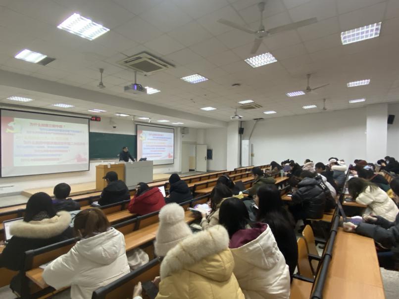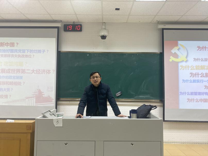 1月8日晚7点,澳门正规官网党委书记朱筱玉于教学楼C301为澳门正规官网全体大一学生做了题为“中国共产党为什么能——100年历程与启示”的主题党课教育,带领同学们深入学习中国共产党百年发展史。