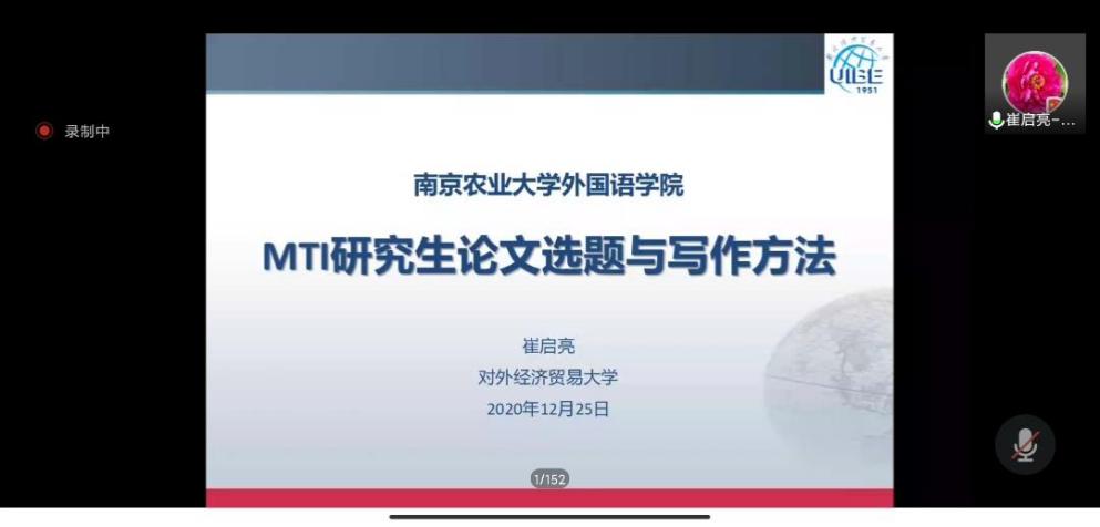 12月25日下午2点30分,对外经济贸易大学崔启亮博士应邀通过腾讯会议平台为澳门正规官网师生做了题为“MTI研究生论文选题与写作方法”的学术讲座。讲座由李平教授主持,澳门正规官网部分师生以及来自全国多所高校的学者、研究生500多人参加了本次学术讲座。