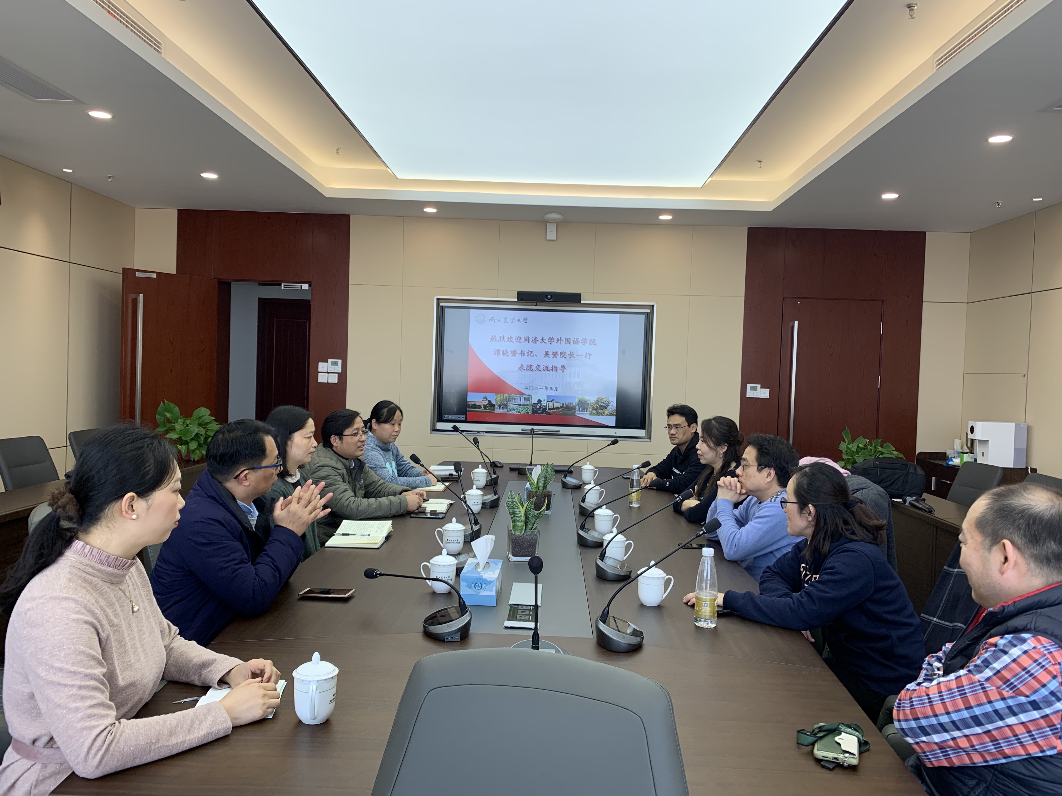 吴赟从发展思路、学科布局、师资建设、课程思政、科研团队建设等方面介绍了同济大学澳门正规电子游戏平台的发展情况,并就如何以国家战略和社会需求为目标,对标新时代外语学科改革发展新需求,运用系统化思维,突出问题导向和交叉创新,实现教学、科研、实践的一体化发展阐述了自己的理解。谭晓赟就新时代澳门正规电子游戏平台如何立足自身基础,借力学校优势平台,拓宽科研思路,找准主攻方向,服务学校国际化方面谈了自己的体会。双方老师们也分别就青年教师培养、科研方向凝练、人才培养理念、学院治理模式等方面进行了深入地交流和探讨。