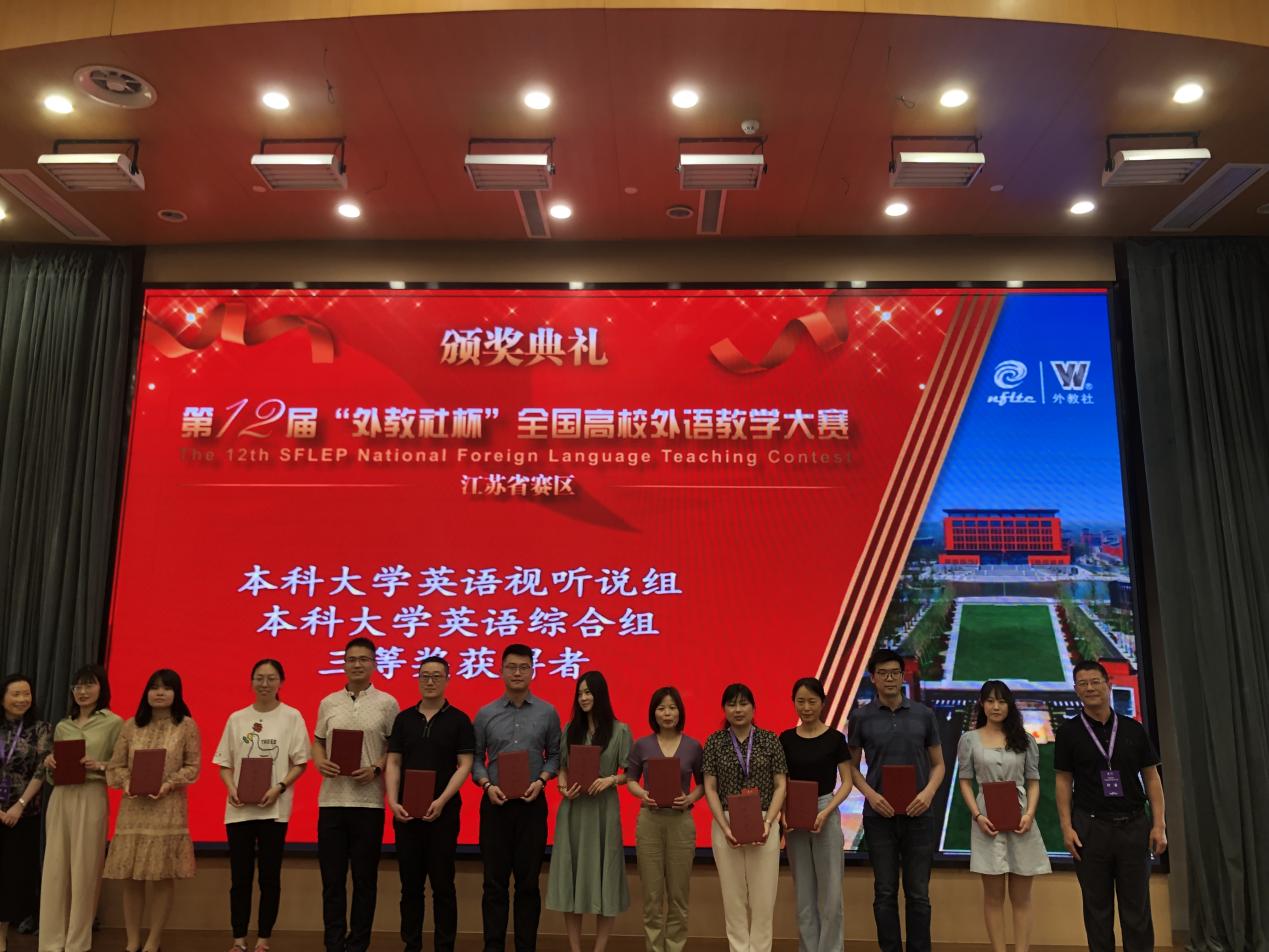 本届比赛共有来自江苏省内各本科和职业院校的48个参赛团队参加比赛。经过激烈角逐,得出一等奖9个、二等奖15个、三等奖24个。澳门正规官网青年教师陈海涛教学团队、秦曦教学团队和朱禹函教学团队分别参加日语组、本科英语类专业组、本科大学英语综合组三个组别的比赛。经过复赛和决赛的激烈竞争,陈海涛教学团队在日语组比赛中荣获一等奖,秦曦教学团队和朱禹函教学团队在各自组别中分获三等奖。