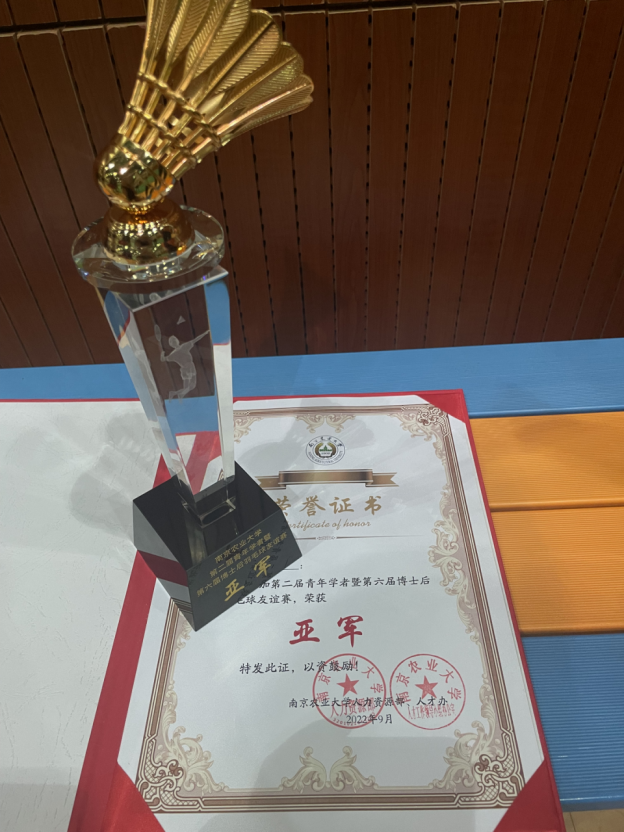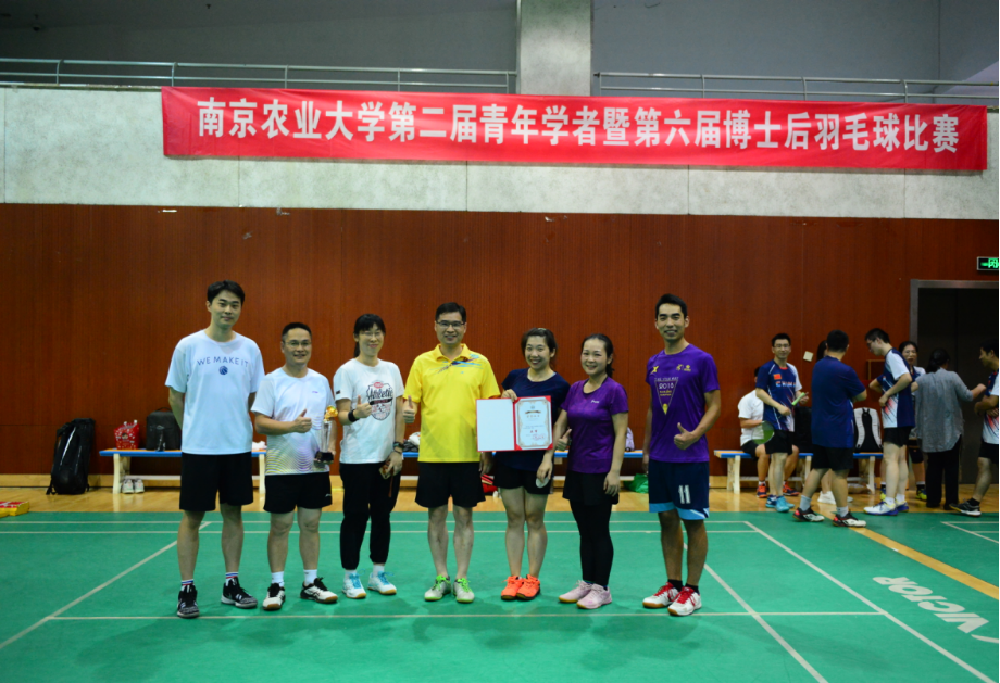 9月20日,南京农业大学第二届青年学者暨第六届博士后羽毛球比赛在南京农业大学体育馆举行,外语草业联合代表队荣获团体第二名。