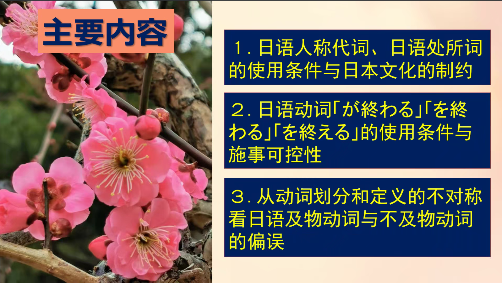 讲座中,于康首先分享了日语人称代词、日语处所词的使用条件与日本文化的制约,并用「彼」「彼女」等人称代词以及「中」「内」等处所词为例就其使用场景、使用条件等做了详细分析,其间还穿插了许多小故事,十分生动有趣。随后,他详细介绍了日语动词「が終わる」「を終わる」「を終える」的使用条件与施事可控性,并举出许多实例帮助听众理解。最后,于康分享了从动词划分和定义的不对称看日语及物动词与不及物动词的偏误。讲座结束后,师生积极与于康就日语词汇相关问题展开提问与交流。