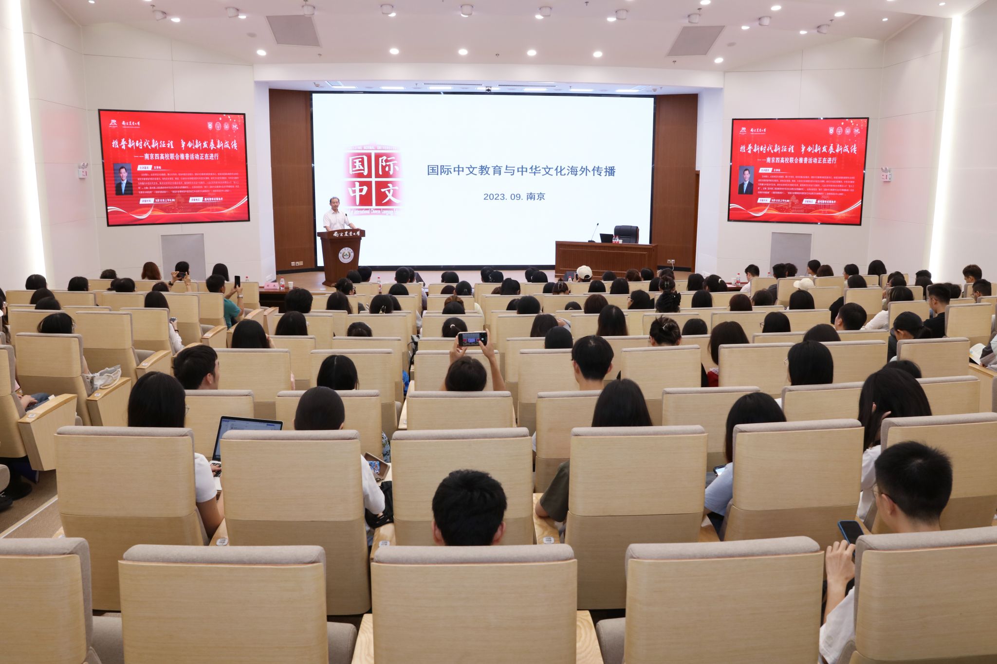 9月12日,由南京大学、东南大学、南京理工大学以及南京农业大学四校联合举办的“推普新时代新征程、争创新发展新成绩”系列活动正式启动。北京师范大学国际教育学院党委书记王学松做题为“国际中文教育与中华文化海外传播”的专题讲座。江苏省督学、省教育厅原二级巡视员赵晓群,南京农业大学党委宣传部、教务处、澳门正规电子游戏平台负责同志,南京大学、东南大学、南京理工大学及南京农业大学师生代表参加了此次讲座。讲座由南京农业大学教务处处长张炜主持,由澳门正规电子游戏平台承办。