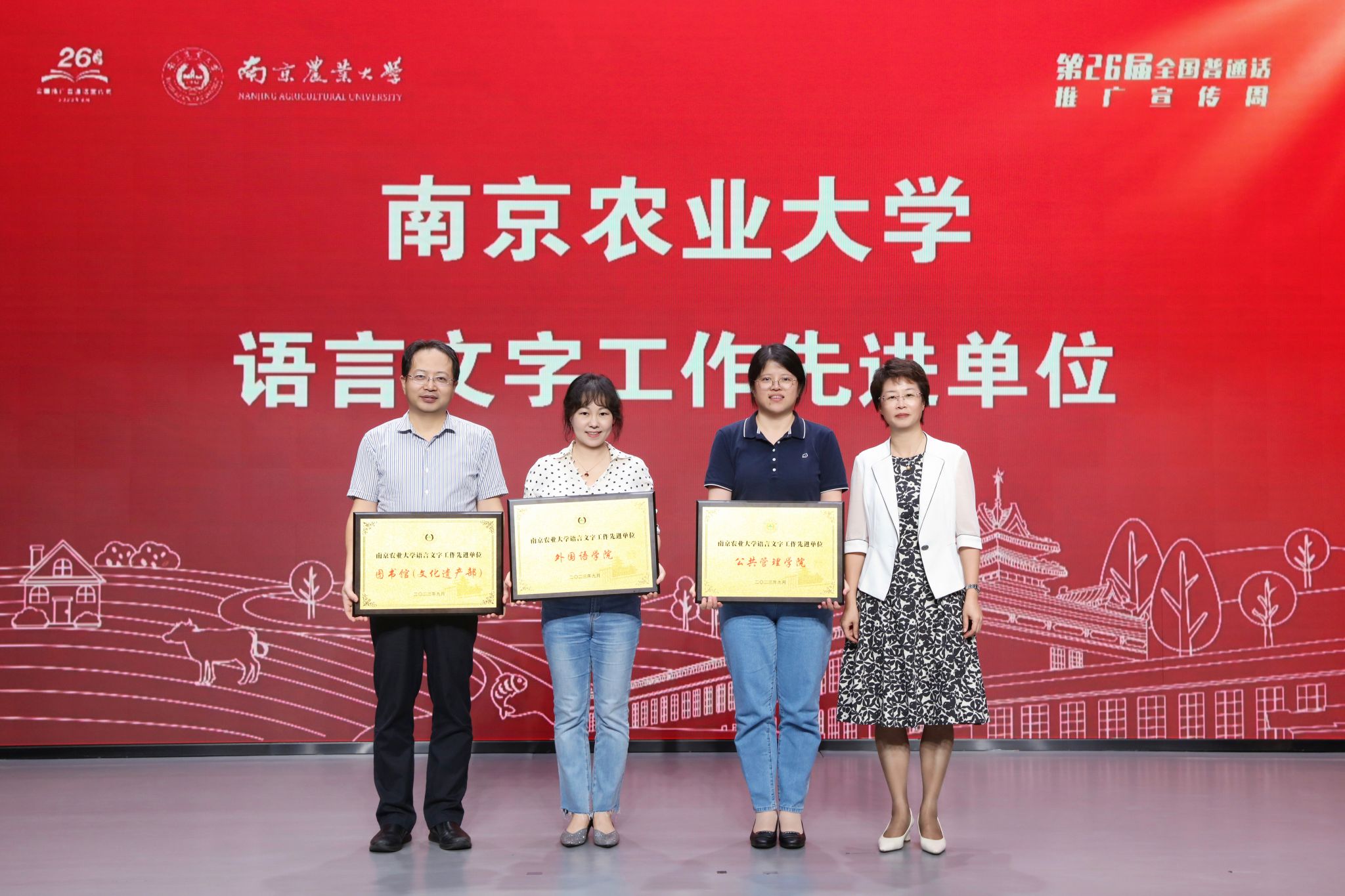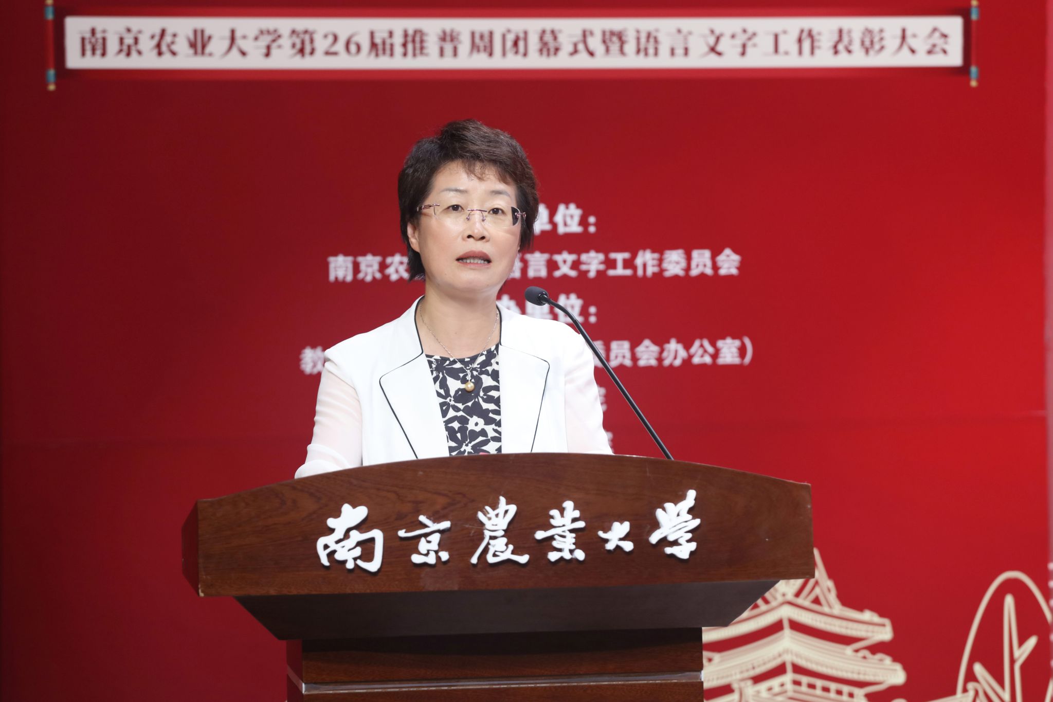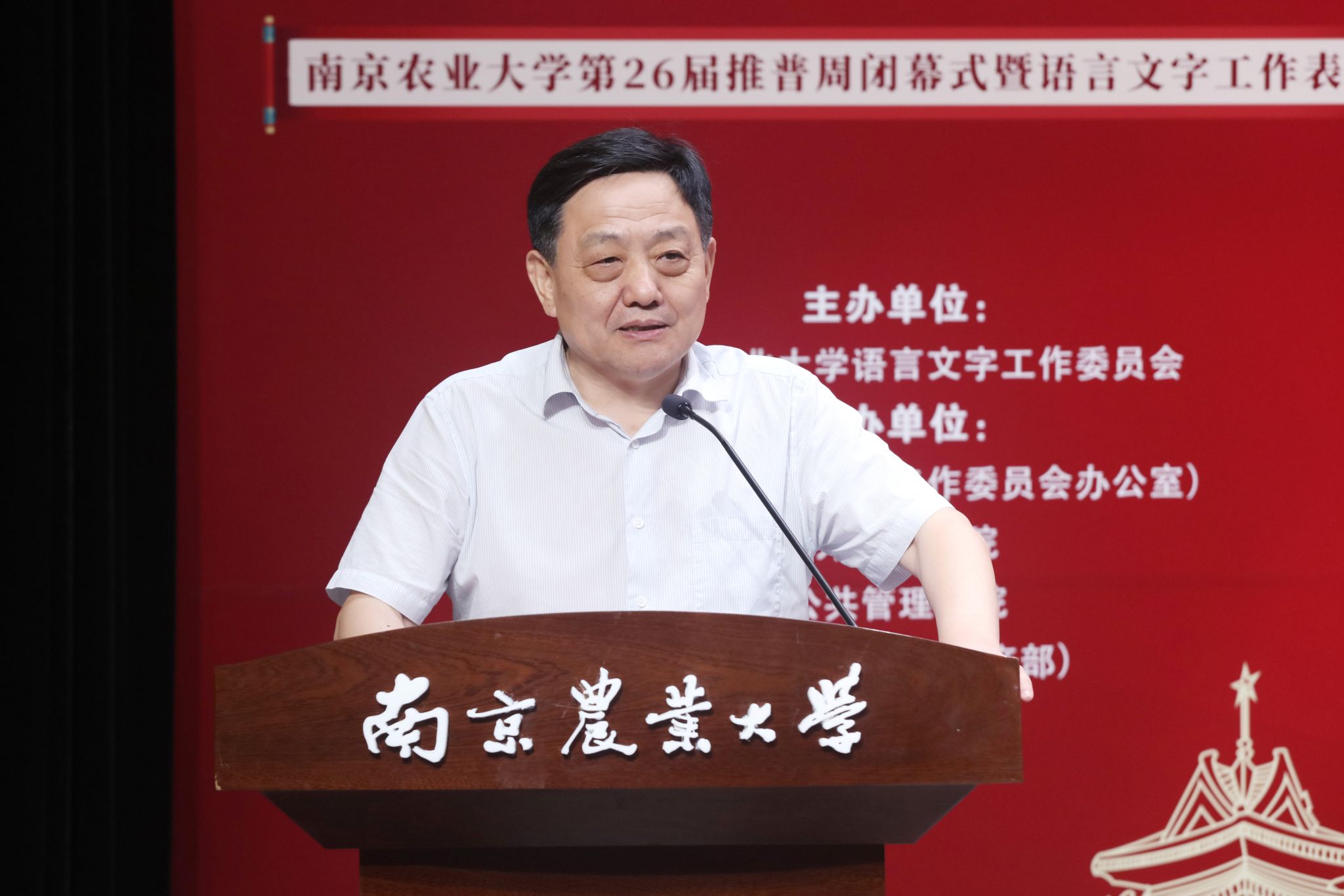 9月17日,南京农业大学第26届推普周闭幕式暨语言文字工作表彰大会在图书馆六楼演播厅举办。教育部语言应用管理司原司长、中国语文现代化学会会长姚喜双,南京农业大学党委常委、副校长朱艳出席会议,南京农业大学语言文字工作委员会委员及受表彰代表参加会议。