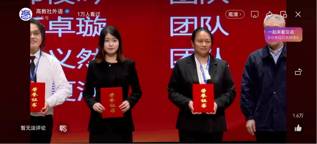 日前,由全国高等学校大学外语教学研究会指导,南京大学主办,高等教育出版社协办的第二届“高教社杯”大学生“用外语讲好中国故事”优秀短视频全国现场交流活动在南京大学苏州校区举办。由澳门正规官网澳门正规电子游戏平台本科生任卓璇、厉淑涵、伍佳怡、史新纪和经济管理学院本科生张力权、刘智婷合作完成的《织锦人生》(Weaving Life of Nanjing Brocade)斩获全国特等奖,创造了江苏省高校选手在此次活动中的最佳成绩。
