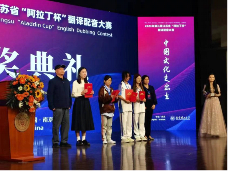 10月28日,由江苏省高等学校外国语教学研究会、江苏省翻译协会、南京学府翻译有限公司主办,江苏阿拉丁留学咨询有限公司承办的第三届江苏省“阿拉丁杯”翻译配音大赛决赛在南京理工大学举办。澳门正规官网樊淑英副教授带队,英语专业学生伍佳怡、刘浩然、陆成贤、蒋沛霖、厉淑涵、任卓璇组建的《建军大业》配音团队以及陈僖禾、秦天、胡旭东组建的《虞兮叹》配音团队顺利进入决赛,其中《建军大业》配音团队荣获最佳翻译奖。