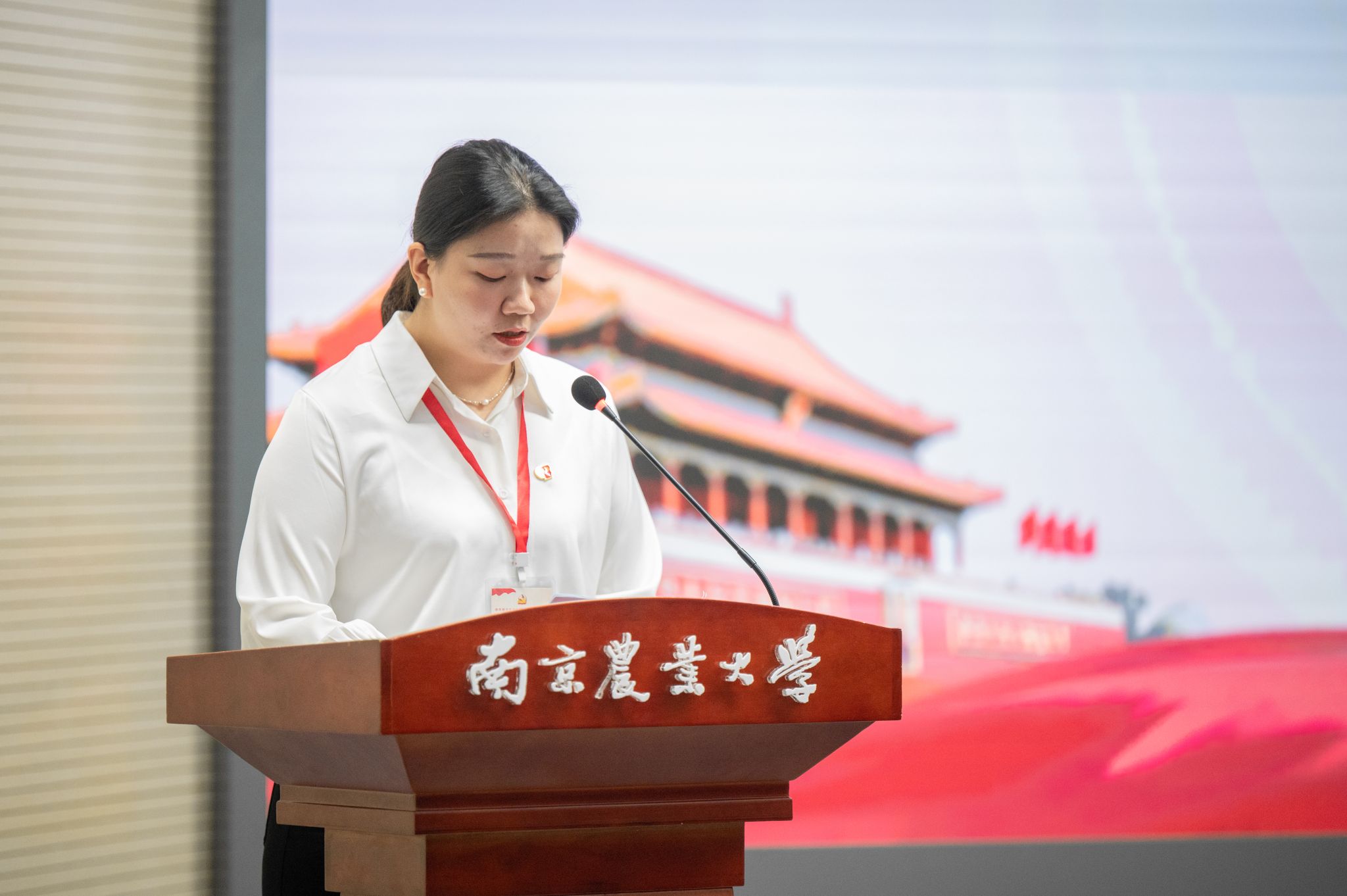 曹璇宣读《中共南京农业大学澳门正规电子游戏平台委员会党员大会选举办法(草案)》。