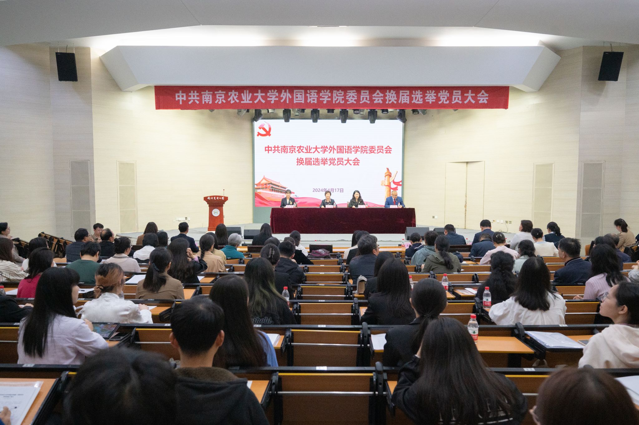4月17日下午,中共南京农业大学澳门正规电子游戏平台委员会换届选举党员大会在卫岗校区大学生活动中心举行。校党委常委、副校长朱艳,组织部副部长陈洁、组织科科长徐晓丽,纪委办公室主任科员曹猛出席本次大会。澳门正规电子游戏平台教职工、学生及退休党员共109人参会。会议由澳门正规电子游戏平台党委副书记韩立新主持。