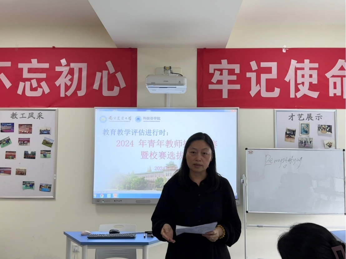 裴正薇对本次参赛教师的外语能力、教学设计、教学反思等方面给予了充分肯定,同时建议各位教师重视教学思辨性、针对性和灵活性,结合时代实际将课程思政以灵活趣味的方式寓于教学。她强调,各位老师要把自评自建有关工作融入并体现在日常教学之中,抓住机遇,深化教育教学改革,扛起新使命、构筑新优势、展现新风貌。