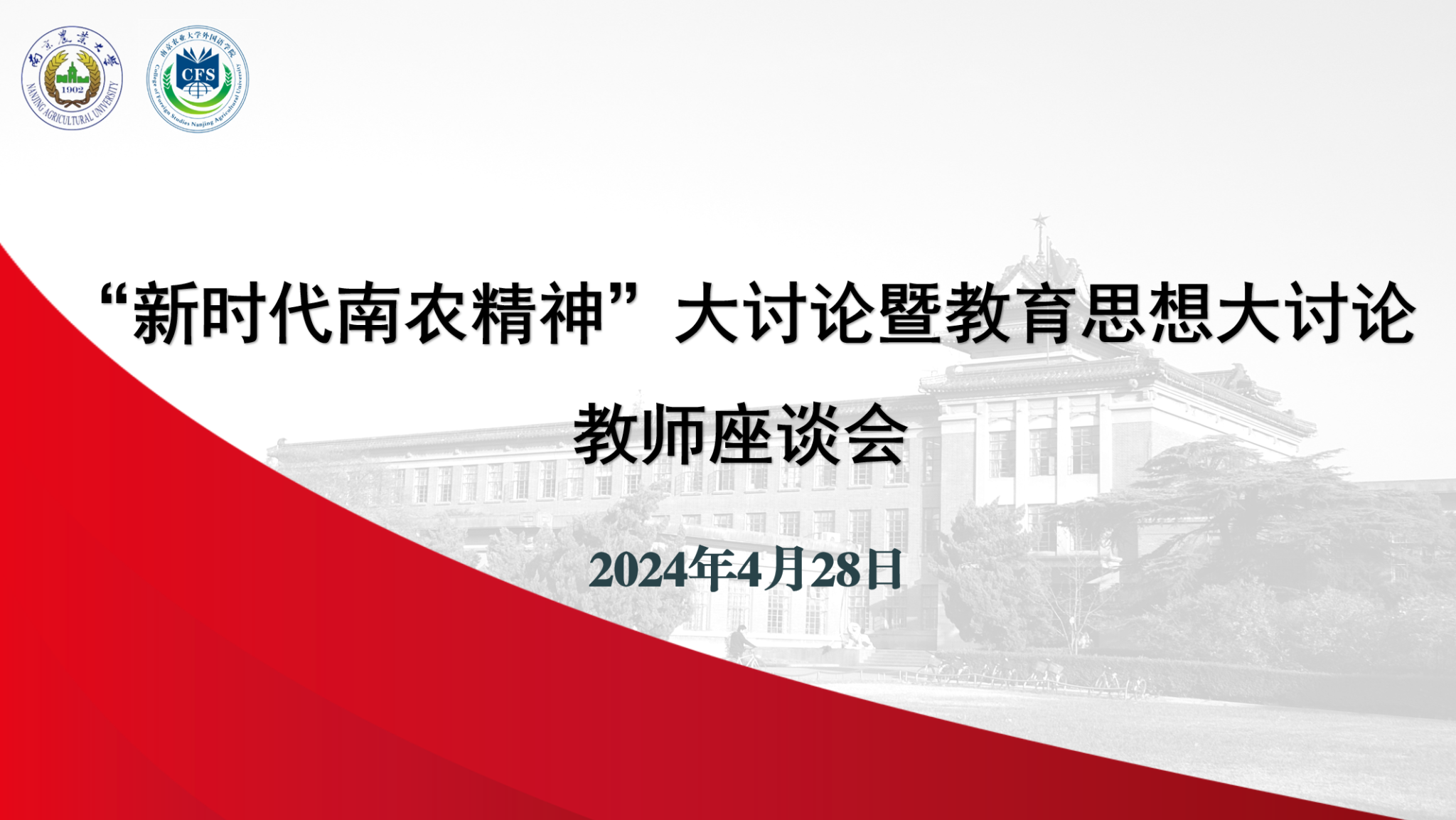 本次座谈会分为两个方面内容讨论。第一部分结合第一阶段“新时代南农精神”大讨论研讨工作开展情况,聚焦第二阶段“新时代南农精神”的传承实践主题,与会老师踊跃发表看法。