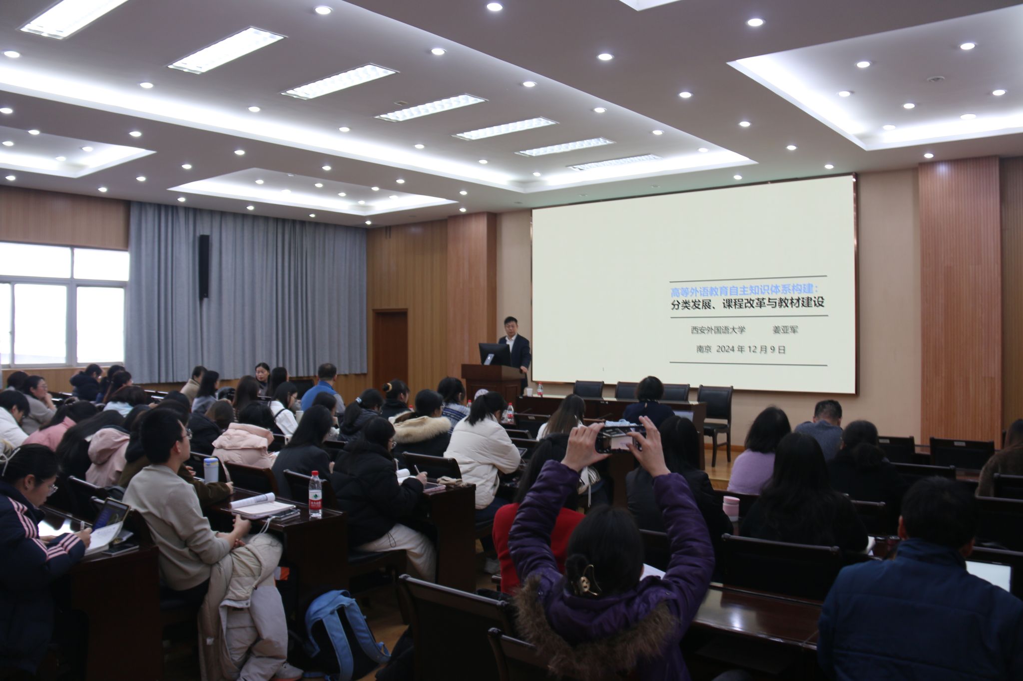 12月9日,西安外国语大学姜亚军教授应邀为澳门正规官网师生带来了一场题为“高等外语教育自主知识体系构建:分类发展、课程改革与教材建设”的精彩讲座。讲座由副院长李震红副教授主持,澳门正规官网师生近百人参加。
