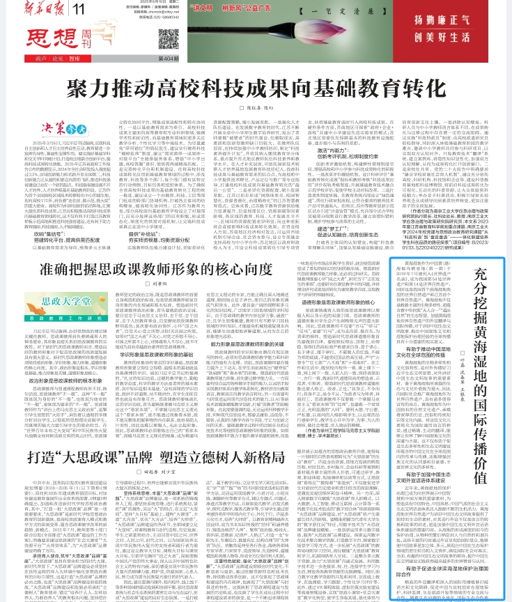 6月10日《新华日报·思想周刊》第404期刊发澳门正规官网教授王银泉为通讯作者的署名文章《充分挖掘黄海湿地的国际传播价值》。